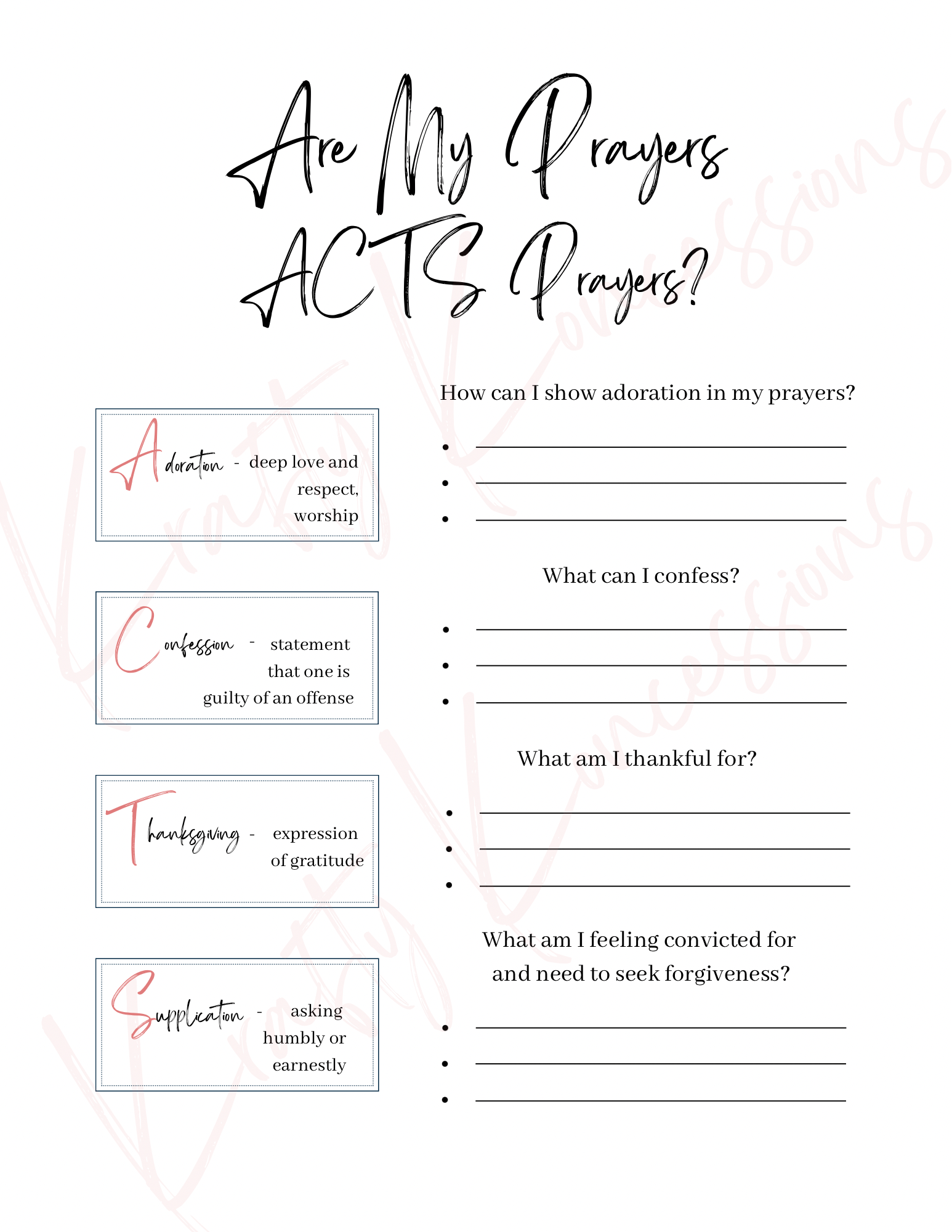 The ACTS prayer acronym is the best tool for new believers learning to pray. It’s also great for disciples of Jesus who are struggling in their prayer life or those who are praying but lack focus. When you come to Jesus Christ in prayer, do you bring a long list of wants, treating your prayer time as a mere opportunity to ask for things? Or do you come with a clean heart in worship, humbly acknowledging the Father’s greatness?